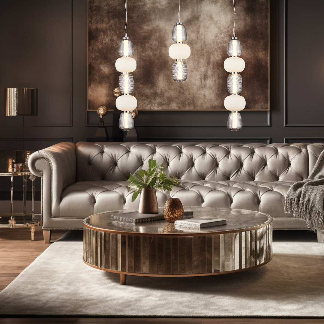 Pendul Caro combina functionalitatea cu designul contemporan. Realizata din Crom Metal & Sticlă. Este dotata cu sursa de lumina LED, putere de 40W LED, flux luminos de 5032lm, temperatura de culoare 3000K, asigurand o iluminare eficienta si placuta. Prezinta gradul de protectie IP20, fiind potrivita pentru utilizare interioara. Functioneaza la tensiune de 230V. Dimensiunile sale (diametru de 170mm, adancime de 170mm, inaltime reglabila 915-2060mm) o fac perfect adaptata pentru spatii generoase precum bucatarii, sali de mese, sufragerii. Unghiul de iluminare de 120° asigura o distributie corecta si uniforma a luminii in spatiu. O solutie de iluminat eleganta care va transforma atmosfera oricarui spatiu modern.