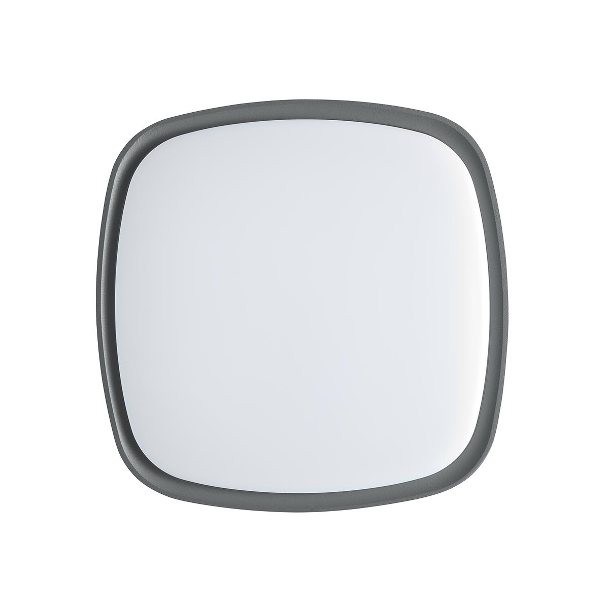 Plafonieră pentru exterior echipată cu LED-uri SMD. Corp din aluminiu turnat sub presiune vopsit în câmp electrostatic culoare gri închis, dispersor din policarbonat opal.