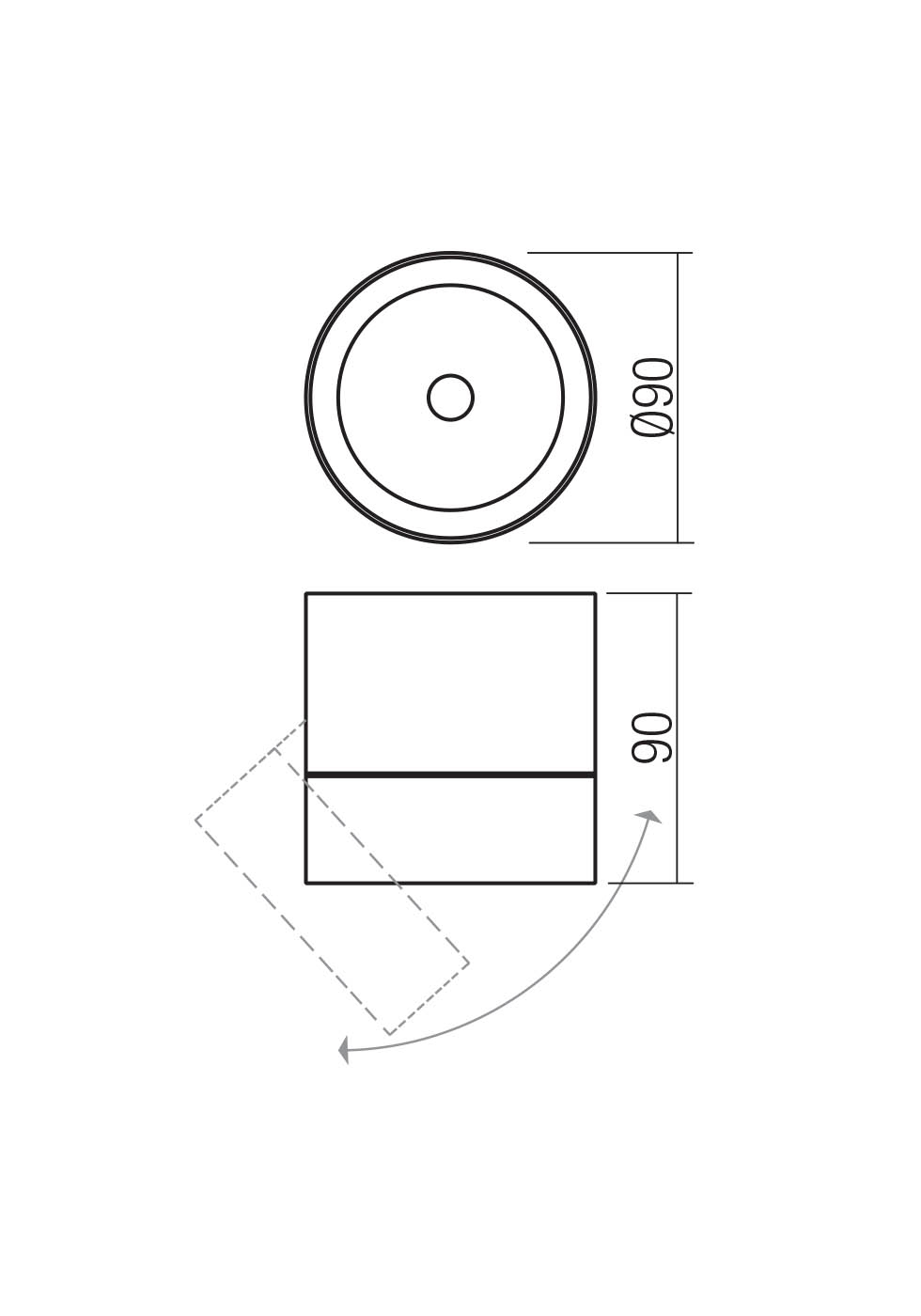 Aplica/plafoniera orientabila pentru exterior, echipata cu LED COB, corp din aluminiu turnat sub presiune vopsit corten, dispersor din sticlă transparentă, alimentator integrat.