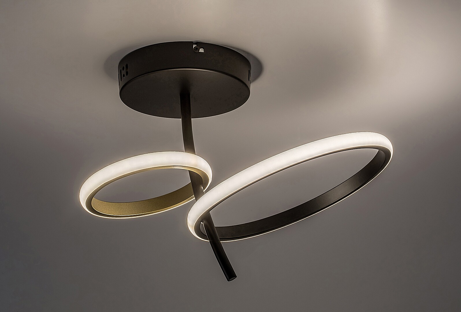 Plafoniera Rábalux Emilion este recomandată pentru cei care consideră că atât designul creativ, cât și funcționalitatea sunt importante atunci când aleg o lampă. Această plafonieră LED modernă este fabricată din metal, într-o combinație elegantă de culori negru și auriu, completată de un abajur din silicon de culoare albă. Designul se distinge prin două elemente rotunde ale lămpii, de dimensiuni diferite, care sunt conectate la o bară de susținere scurtă. Pe lângă aspectul său estetic, plafoniera asigură, în mod eficient și intensitatea luminoasă necesară. Acest model cu aspect unic este o alegere excelentă pentru camera de zi, sufragerie sau dormitor. Indiferent de incinta în care este instalată, lumina albă naturală a plafonierei creează un efect modern și clar. Plafoniera este echipată cu tehnologie LED încorporată, ceea ce asigură o funcționare eficientă din punct de vedere energetic și o durată de viață lungă.
