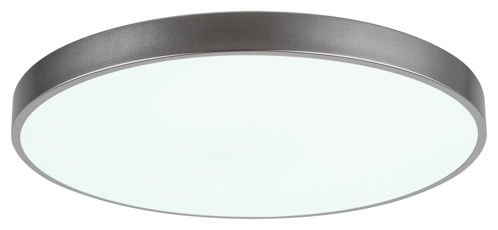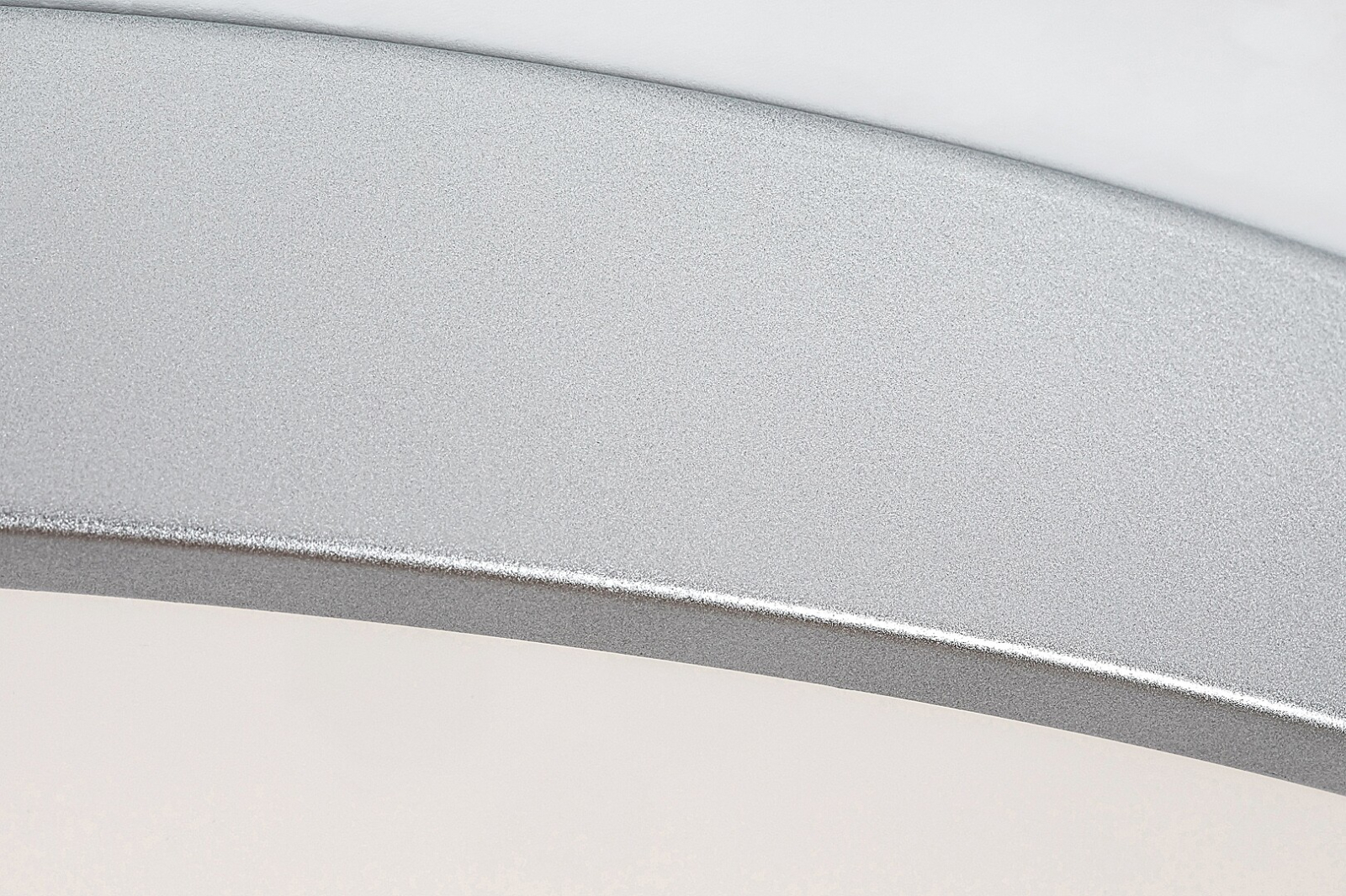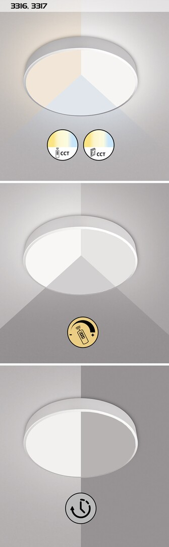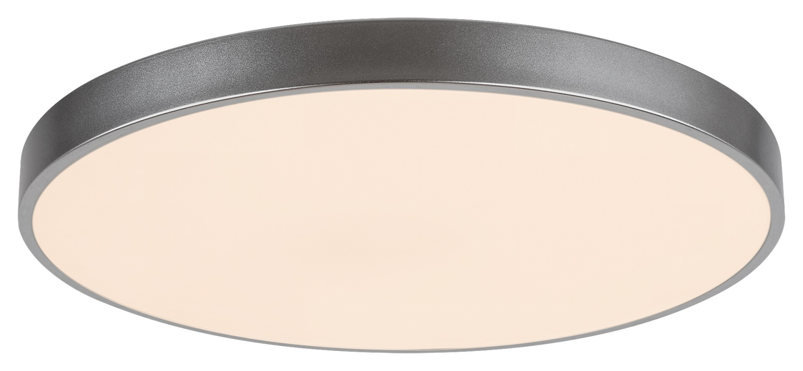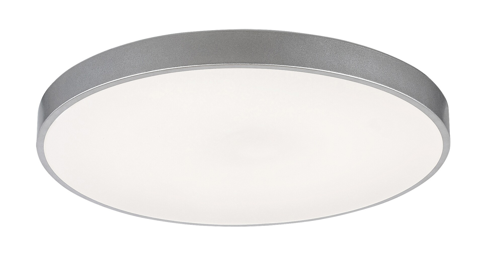 Recomandăm plafoniera rotundă Tesia celor care doresc, pentru livingul sau dormitorul modern, o lampă simplă, cu linii curate, care oferă în plus multiple funcții suplimentare. Pentru Tesia, corpul de metal argintiu este complimentat de un abajur alb de plastic. Lampa conține o sursă de lumină LED încorporată cu o putere de 60W, o intensitate luminoasă de 5.000 de lumeni și o temperatură a culorii care poate fi reglată după dorință între 3.000-6.000K cu ajutorul unui comutator de perete sau a unei telecomenzi. Durata de viață a becului este fantastică: 50.000 de ore! Tesia are și variator, adică luminozitatea sa poate fi schimbată după dorință cu ajutorul unei telecomenzi. Caracteristicile suplimentare includ o funcție de memorare, un temporizator și o funcție de lampă de veghe. Diametrul acestei plafoniere cu design extrem de subțire este de 600mm, distanța față de tavan de doar 50mm.
