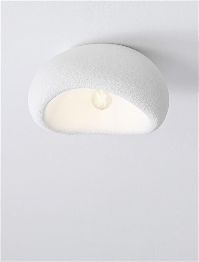 Plafoniera AERE impresionează cu designul său sculptural din poliuretan și rășină Sandy White, perfect pentru a ilumina cu stil orice încăpere. Cu dimensiuni compacte de 40x32 cm și înălțime de 21.2 cm, adaugă un farmec modern și rafinat.