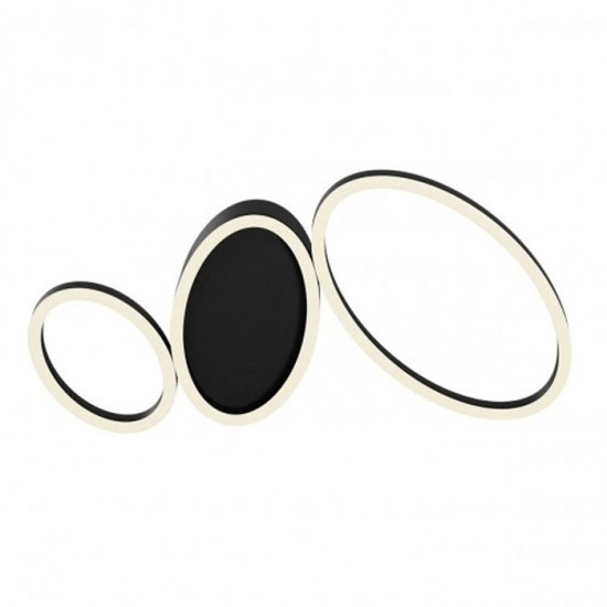 Plafoniera moderna pentru interior, cu structură din metal și aluminiu vopsit negru mat si dispersoare din silicon alb opal.