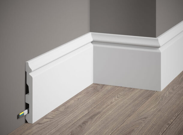 Plinta Premium MD360P este un profil pentru cei care nu recunosc compromisuri intre calitate si aspect. Netezimea perfecta a suprafetei si albul ca zapada cu finisaj satinat sunt principalele avantaje ale plintelor din colectia Premium. În plus, profilul are toți cei mai importanți parametri tehnici, care îl fac potrivit pentru utilizare în orice tip de spații – atât casnice, cât și publice. Rezistența completă la apă înseamnă că mulajul poate fi curățat umed și instalat în încăperi cu umiditate foarte mare. Molurile au cel mai înalt nivel de rezistență la deteriorări mecanice, ceea ce în practică se va traduce prin mulți ani de aspect impecabil. Plintele albe introduc efectul de curatenie, curatenie si estetica in interior. Cel mai mare avantaj al plintelor din linia Premium este posibilitatea de instalare imediată, directă, fără a fi nevoie să le vopsiți. Astfel, plinta MD360P este deja pregatita pentru instalare in faza de productie. Profilul este perfect pentru renovari rapide, unde ne propunem sa reducem cat mai mult activitatile si sarcinile.