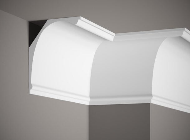 Bara de tavan MDB103 este un profil curbat elegant într-o formă simplă, dar intrigantă. Singurele ornamente sub formă de protuberanțe subtile sunt situate în părțile superioare și inferioare ale benzii. Acest lucru face ca MDB103 să fie potrivit pentru orice tip de cameră. Va arăta frumos atât în casă, cât și în spațiile comerciale. Materialul ProFoam din care a fost confectionat este rezistent atat la lumina solara cat si la apa. Banda de tavan poate fi instalată în interioare umede expuse la radiații UV puternice și prelungite. Materialul nu se va decolora sau deforma nici după mulți ani. MDB103 a fost protejat cu un grund special, care netezește structura și facilitează absorbția straturilor ulterioare de vopsea. Puteți picta mularea în orice culoare folosind un produs pe bază de apă. .