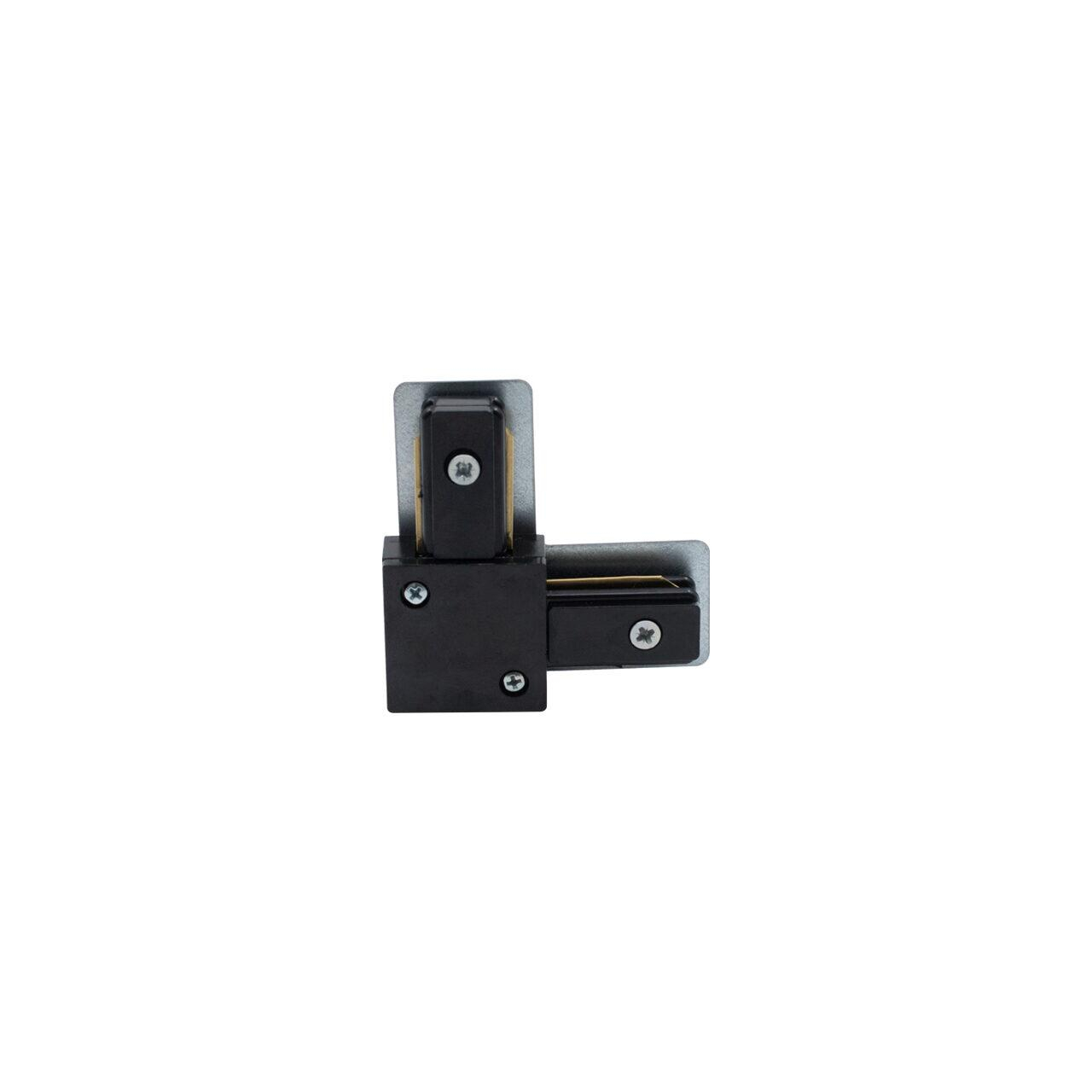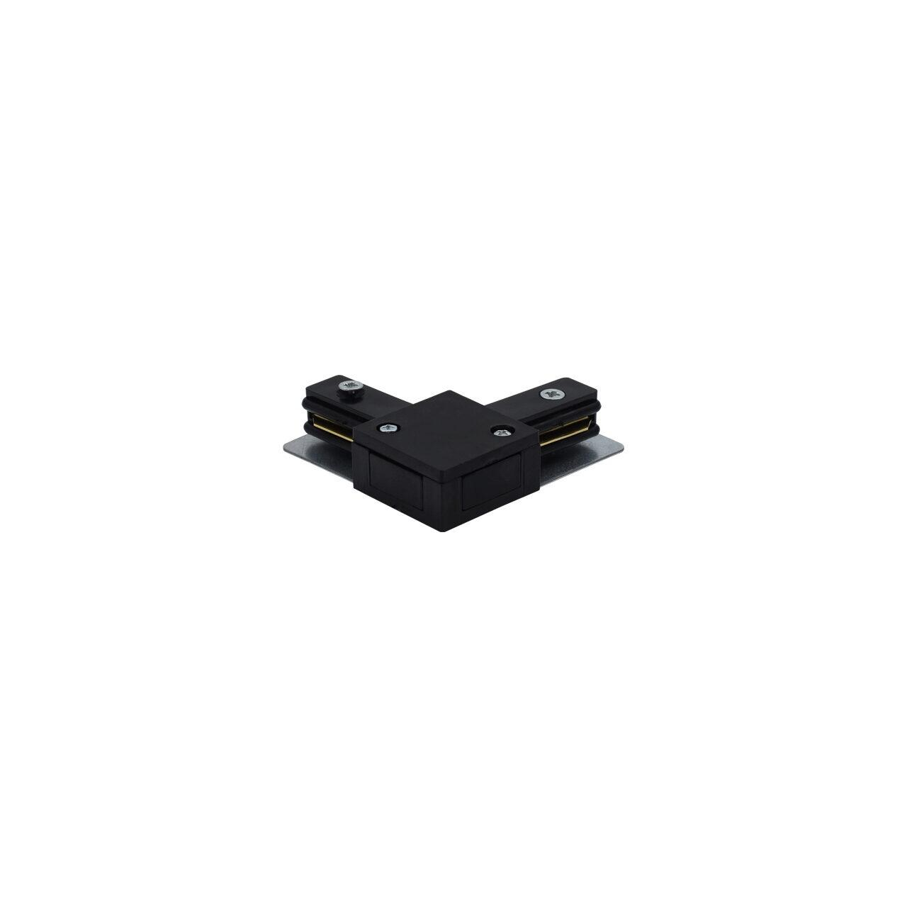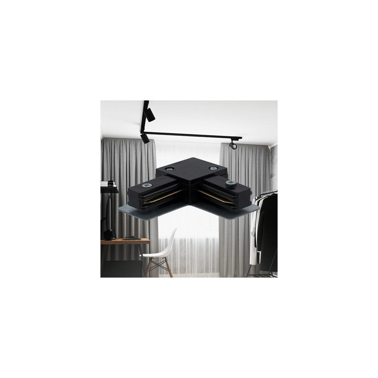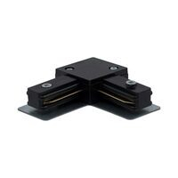 Îmbinare tip „L” pentru șină de iluminat track, finisaj negru, destinată conectării a două segmente la un unghi de 90°. Ideală pentru realizarea colțurilor în sisteme de iluminat moderne.