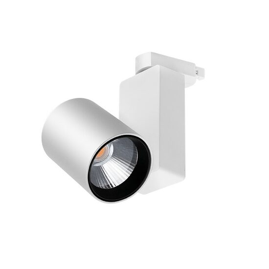 Spot LED pe șină cu finisaj alb este o soluție de iluminat direcțional de înaltă performanță, concepută pentru sistemele de iluminat tip track. Cu o putere de 30W și un flux luminos de 2600 lm, furnizează o lumină cald neutră de 3000K, care creează o atmosferă primitoare și confort vizual, fără a compromite intensitatea și claritatea luminii.
