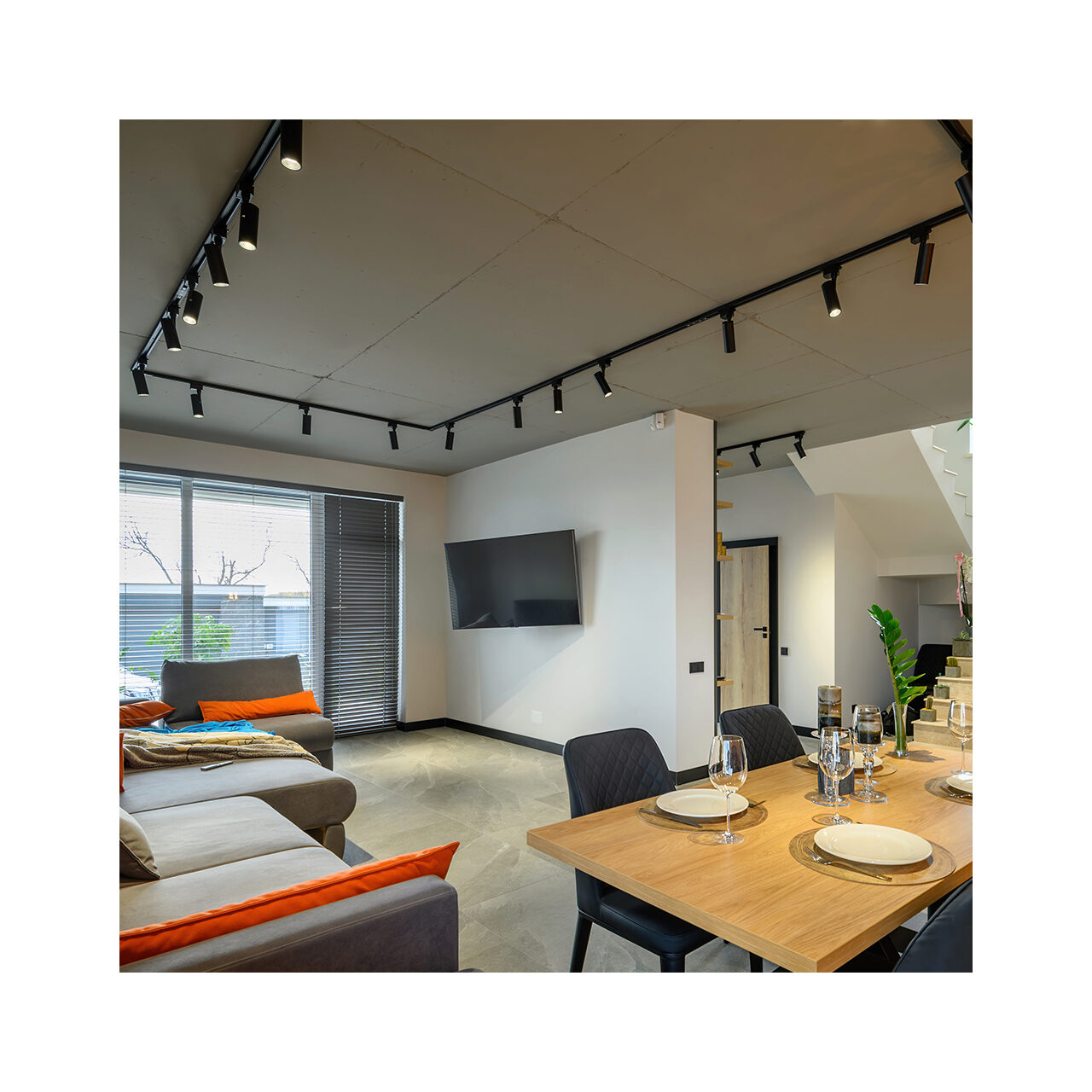 Spot LED pe șină B30 cu finisaj negru mat este conceput pentru sistemele de iluminat tip track și oferă o lumină direcțională puternică, eficientă și uniformă. Cu o putere de 30W și un flux luminos de 2450 lm, furnizează o lumină neutră de 5000K ce asigură o reproducere precisă a culorilor și o vizibilitate excelentă, fără efect de reflexie caldă. Această temperatură de culoare îl recomandă pentru spații comerciale, showroom-uri, birouri, depozite sau alte medii profesionale unde claritatea vizuală și detaliile sunt esențiale. Finisajul negru mat adaugă un accent estetic modern și se armonizează cu amenajările contemporane, minimaliste sau industrial-chice. Capul orientabil permite ajustarea precisă a fasciculului de lumină pentru a evidenția produsele expuse, zonele de interes sau suprafețele de lucru. Spotul funcționează la tensiune standard 220-240V și este destinat utilizării la interior. Este o opțiune eficientă energetic și vizual, potrivită pentru proiecte unde iluminatul direcțional intens, clar și profesionist este o componentă cheie a amenajării.