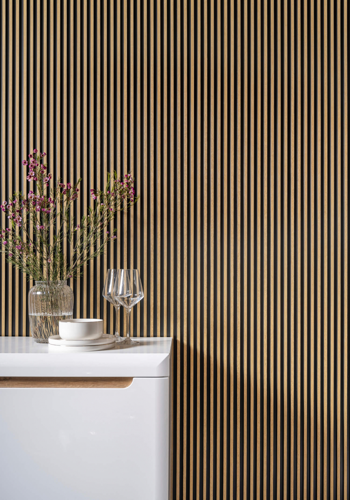 Profilul decorativ L0105 in nuanta lemnului natural va deveni un decor extraordinar, transformand chiar si un perete obisnuit intr-un element atmosferic de design interior. Fabricat din material PolyForce, este rezistent la apă, făcându-l perfect pentru bucătărie, baie sau alte încăperi expuse contactului constant cu umiditatea. Produsul a fost creat folosind tehnologia patentată ScratchShield®, asigurând o duritate extremă a suprafeței. Utilizarea profilelor decorative are un efect pozitiv asupra acusticii camerei, reducând zgomotul și ecoul. Lungimea sipcilor este de 270 cm, astfel ca panourile pot fi montate dintr-o bucata fara a fi nevoie de a crea rosturi inestetice. Instalarea este incredibil de simplă și nu necesită echipamente sau competențe avansate. Pur și simplu acoperiți spatele profilelor decorative cu lipici și așezați panourile pe perete, unul lângă celălalt.