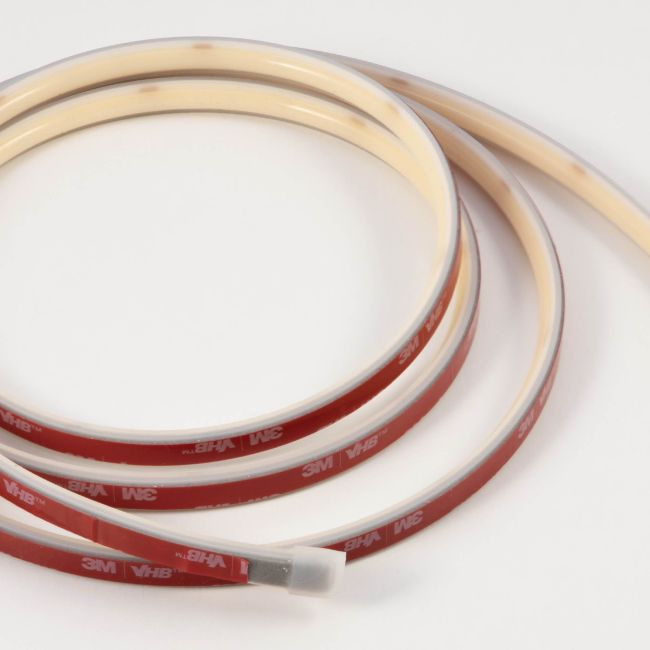 Benzi flexibile cu LED-uri tip COB, 256 LED/m, 352 LED/m, 512 LED/m, lățime PCB 10 mm și 512 LED/m, lățime PCB 12 mm, pentru interior (IP20) (zone cu umiditate ridicată) și exterior (IP67), cu înveliș complet de opal satinat anti UV. Lungime totală de 5m, secționabilă în conformitate cu desenele tehnice din catalog. Fixare rapidă, datorită benzii biadezive 3M originale, roșie (aplicată pe spatele benzii cu LED-uri). Aplicaţii Iluminatul arhitectural de interior sau exterior, iluminatul general indirect (scafe, nișe), iluminatul decorativ.