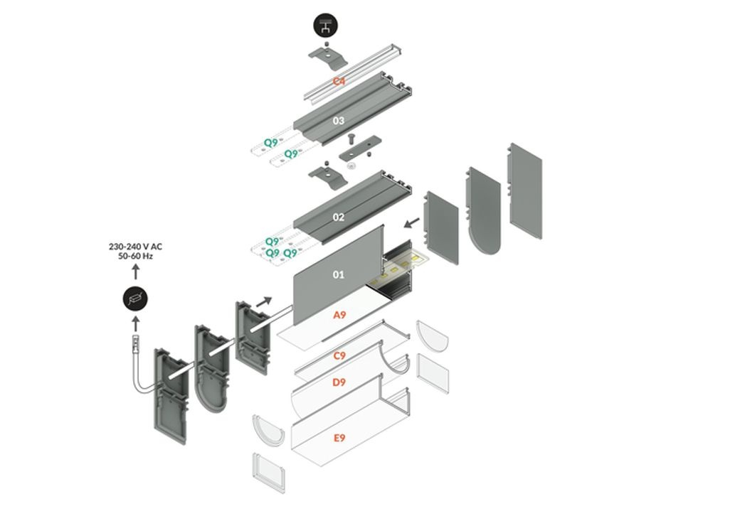 - Profil din aluminiu anodizat pentru montaj aparent.